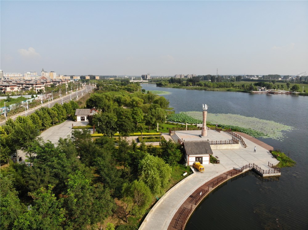 工程位于中牟縣雁鳴湖鎮中心區域,工程包括運糧河和引水渠(小雁河),其中運糧河治理長度4.3km。占地面積約1686畝,是融合水利工程、生態工程、景觀工程、水系補源工程為一體的綜合性工程,工程總投資2.69億元。景區共分柳偎暖坪、飛雁落洲、水鏡月明、雁月碼頭等十個主要景點,塑造了河、湖、溪、島等自然形態元素與亭、臺、廊、榭等人工形態元素,共同構成一幅自然山水畫卷。