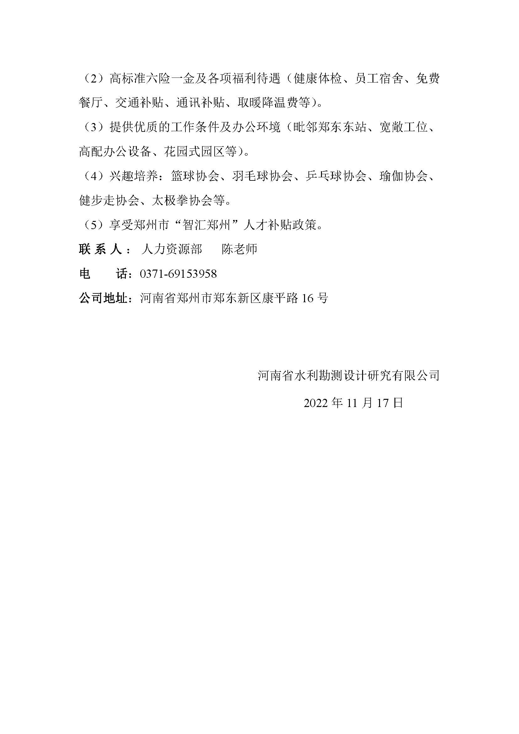 河南省水利勘測設計研究有限公司2023年校園招聘公告