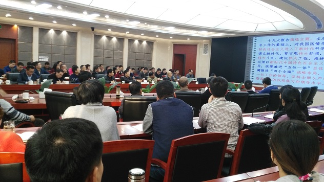 黨的十九大是全面建成小康社會決勝階段、中國特色社會主義發展關鍵時期召開的一次十分重要的大會,在我黨發展史和社會主義發展階段具有里程碑意義。為了使廣大黨員深入領會習總書記新時代中國特色社會主義思想,進一步推進公司學習貫徹黨的十九大精神工作,11月8日下午,我公司舉行“學習貫徹十九大精神專題報告會”,邀請中共鄭州市委黨校張文化教授作輔導報告。公司董事長、黨委書記翟淵軍主持會議,公司中層以上管理人員、黨員共計130余人參加會議。