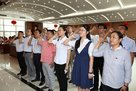 會議由公司黨委副書記、勘測公司總支書記、董事長趙健倉同志主持,黨委委員、設計公司總經理朱太山同志宣讀了公司黨委表彰決定,工程規劃院黨支部等4個“五好”黨支部、楊華軍等35名優秀黨員和任云峰等2名優秀黨務工作者身披綬帶上臺領取了獎牌和榮譽證書;14名新黨員面對黨旗莊嚴宣誓;豫水國際黨支部的薛應科、勘測公司的周子東作為優秀黨員代表在會上進行典型發言;工程設計二院的申黎平、勘測公司張慶功作為新黨員代表進行發言。