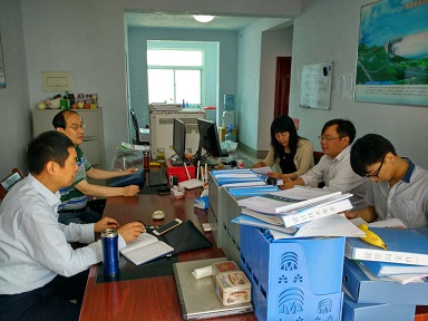 出山店水庫設代現場涉及工程專業和移民專業,工程設代處張一冰和移民設代處康新春分別介紹了專業工作進展情況。審核人員通過檢查發現,設代現場管理規范、環境整潔、制度健全。同時也發現,在管理目標的完善、策劃文件的審批、會議記錄、收發文登記等方面,還需要進一步改進和完善。