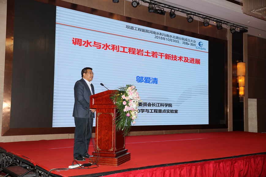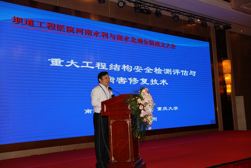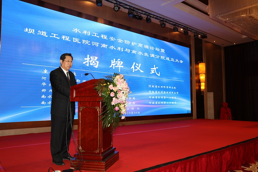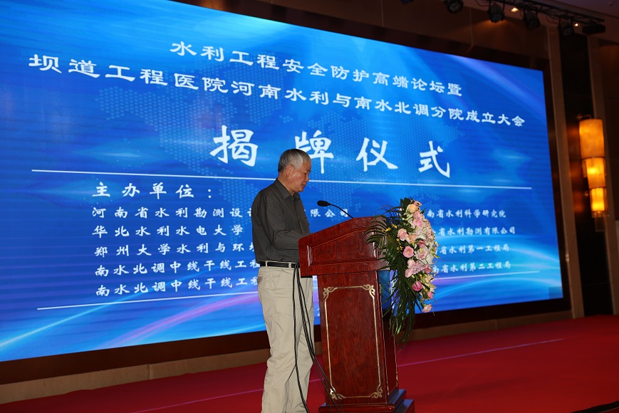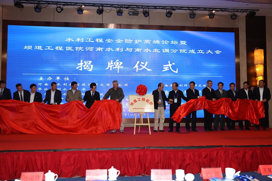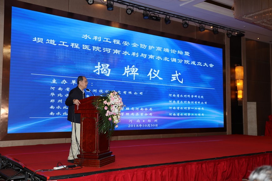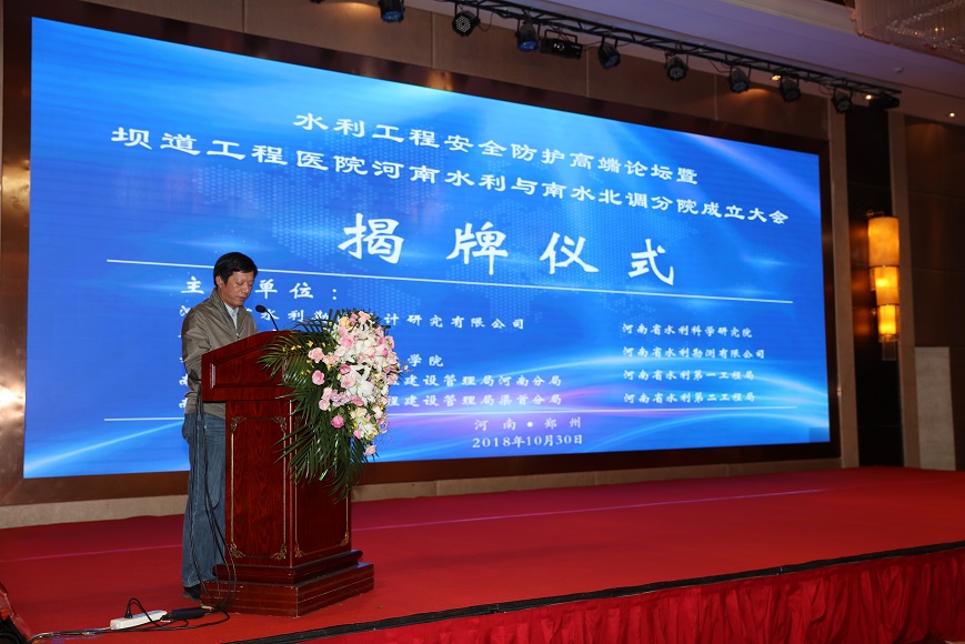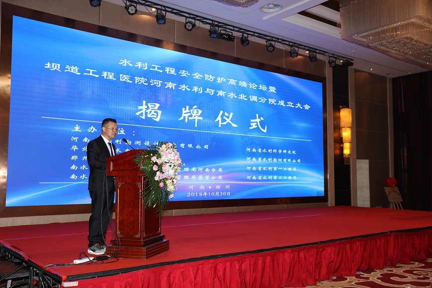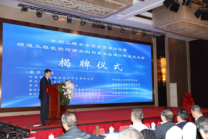 2018年10月30日上午,水利工程安全防護(hù)高端論壇暨壩道工程醫(yī)院河南水利與南水北調(diào)分院成立大會在鄭州天鵝城國際飯店隆重召開。中國工程院王家耀院士、王復(fù)明院士等來自40多家單位的領(lǐng)導(dǎo)、嘉賓200多人參會。會議開幕式由河南省水利勘測設(shè)計(jì)研究有限公司翟淵軍董事長主持,華北水利水電大學(xué)劉文鍇校長致歡迎辭,相關(guān)領(lǐng)導(dǎo)講話,王復(fù)明院士介紹了《壩道工程醫(yī)院建設(shè)進(jìn)展》,會議舉行了揭牌儀式和高端論壇。