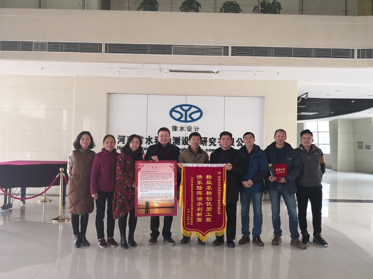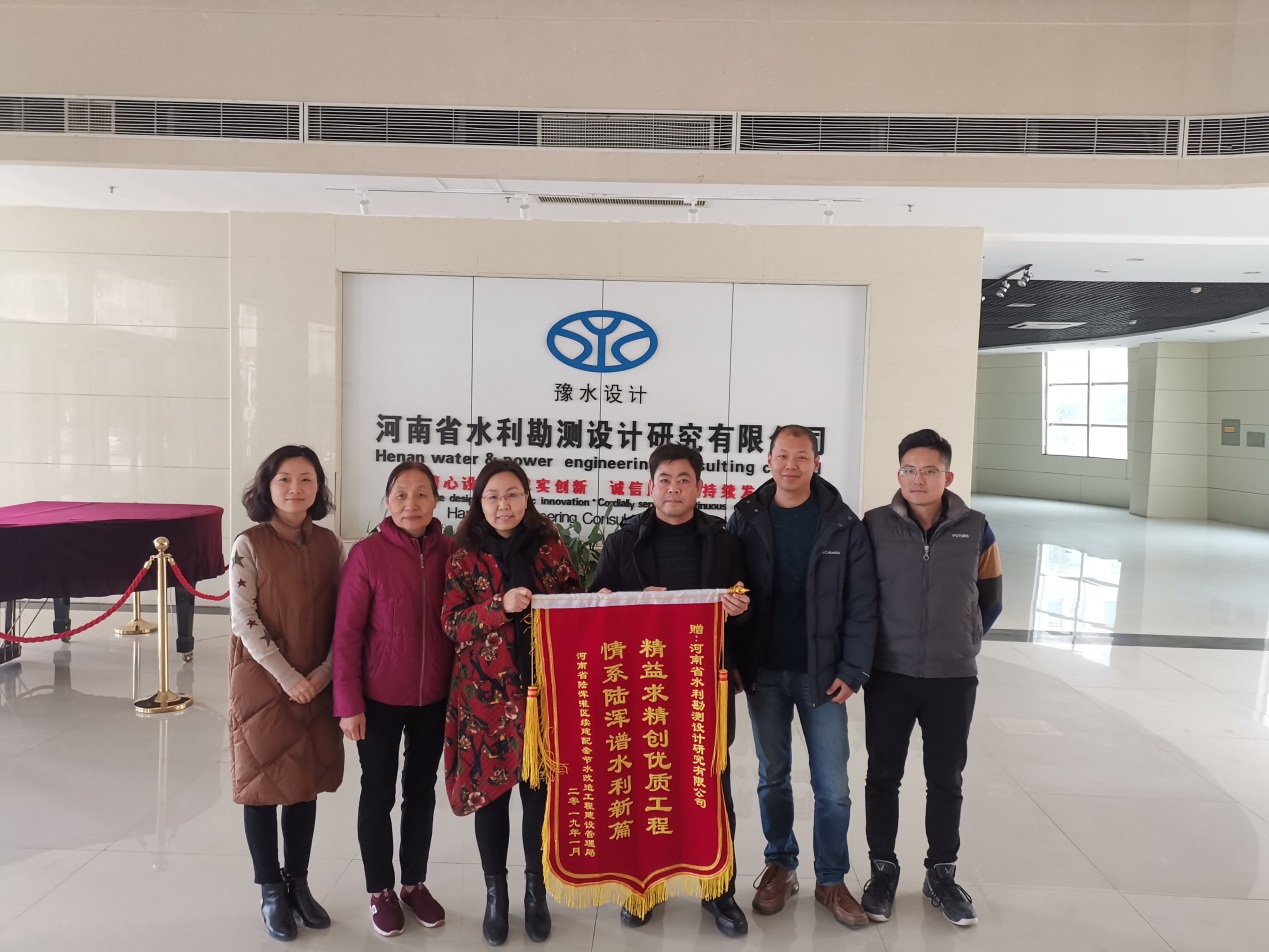 2019年1月8日,河南省陸渾灌區續建配套節水改造工程建設管理局(以下簡稱“建管局”)局長李付長、副局長段笑暉等一行人專程為我公司送來感謝信及錦旗,對公司及陸渾灌區項目組成員積極、努力、認真、負責的設計工作給予了充分的肯定:“精益求精創優質工程 情系陸渾譜水利新篇”;對各參建人員在工程建設過程中提供的優質服務表示感謝。
