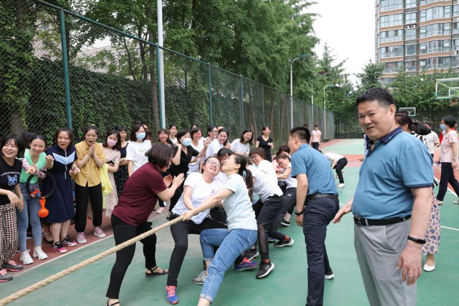 15點10分,開場熱身的拔河比賽揭幕戰(zhàn)首先開始。共6支隊伍參賽,每隊10名女職工,采取三局二勝淘汰制進行。隨著比賽哨聲響起,隊員們卯足勁頭、步調(diào)一致、全力以赴,盡展巾幗風采,秒變“女漢子”。比賽中,隊員們手掌被繩子勒得通紅、大汗淋漓,有人甚至被拽倒在地……為了團隊榮譽,隊員們還是咬緊牙關(guān)、一鼓作氣,場上驚心動魄,旁邊的啦啦隊也毫不遜色,“一二、加油、一二、加油……”的吶喊助威聲此起彼伏。