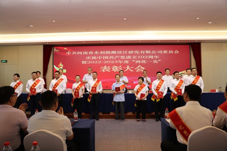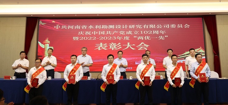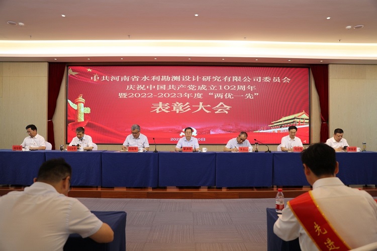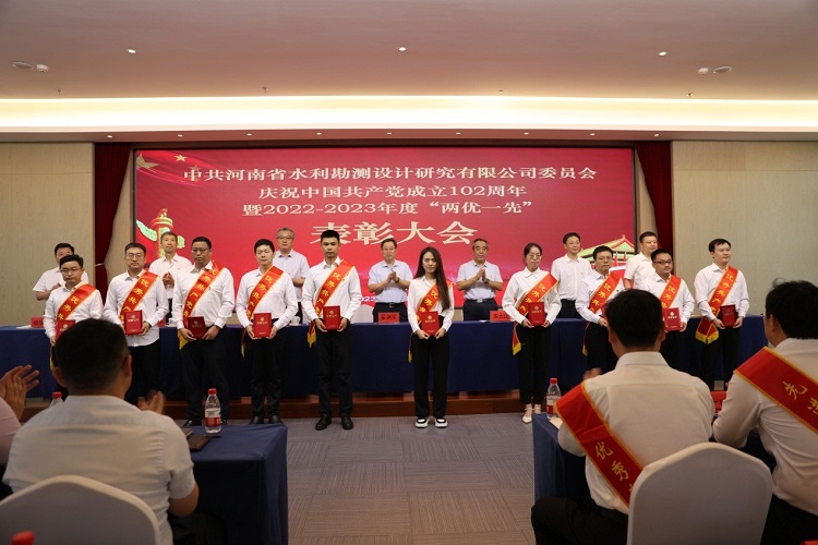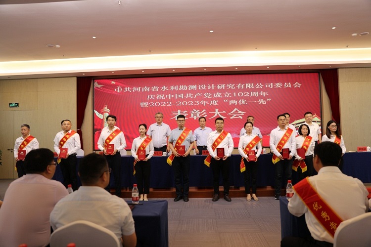 6月30日上午,中共河南省水利勘測設(shè)計(jì)研究有限公司委員會隆重舉行慶祝中國共產(chǎn)黨成立102周年暨2022-2023年度“兩優(yōu)一先”表彰大會,熱烈慶祝偉大的中國共產(chǎn)黨102歲華誕,系統(tǒng)總結(jié)公司兩年來黨建工作,表彰2022-2023年度優(yōu)秀共產(chǎn)黨員、優(yōu)秀黨務(wù)工作者和先進(jìn)黨支部,動員全體共產(chǎn)黨員向先進(jìn)學(xué)習(xí)、向模范看齊,進(jìn)一步激發(fā)廣大黨員群眾干事創(chuàng)業(yè)動力和熱情,共同為豫水設(shè)計(jì)的美好明天團(tuán)結(jié)奮斗。會議由公司黨委委員、總經(jīng)理朱太山主持。
