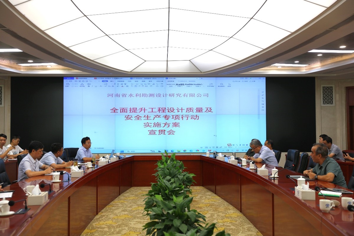 為貫徹落實《河南水利投資集團有限公司全面提升工程建設管理水平專項行動實施方案》(豫水投〔2023〕151 號)精神,結合《水利部辦公廳關于印發(fā)2023年度水利工程建設質量提升工作方案的通知》(辦建設〔2023〕94號)、水利部《水利建設項目稽察工作指導手冊》(2023年版)和省委省政府、省水利廳有關部署要求,全面提升工程設計質量和安全生產管理,2023年7月25日下午,公司在二樓會商中心特舉辦“全面提升工程設計質量及安全生產專項行動實施方案”宣貫會,會議由總經理朱太山主持,技術總監(jiān)楊華軍進行宣貫。公司副總經理賈少燕、趙廷華、監(jiān)事會主席閆汝華、公司技術副總監(jiān)、各生產部門班子成員及各項目設總共100余人參會。