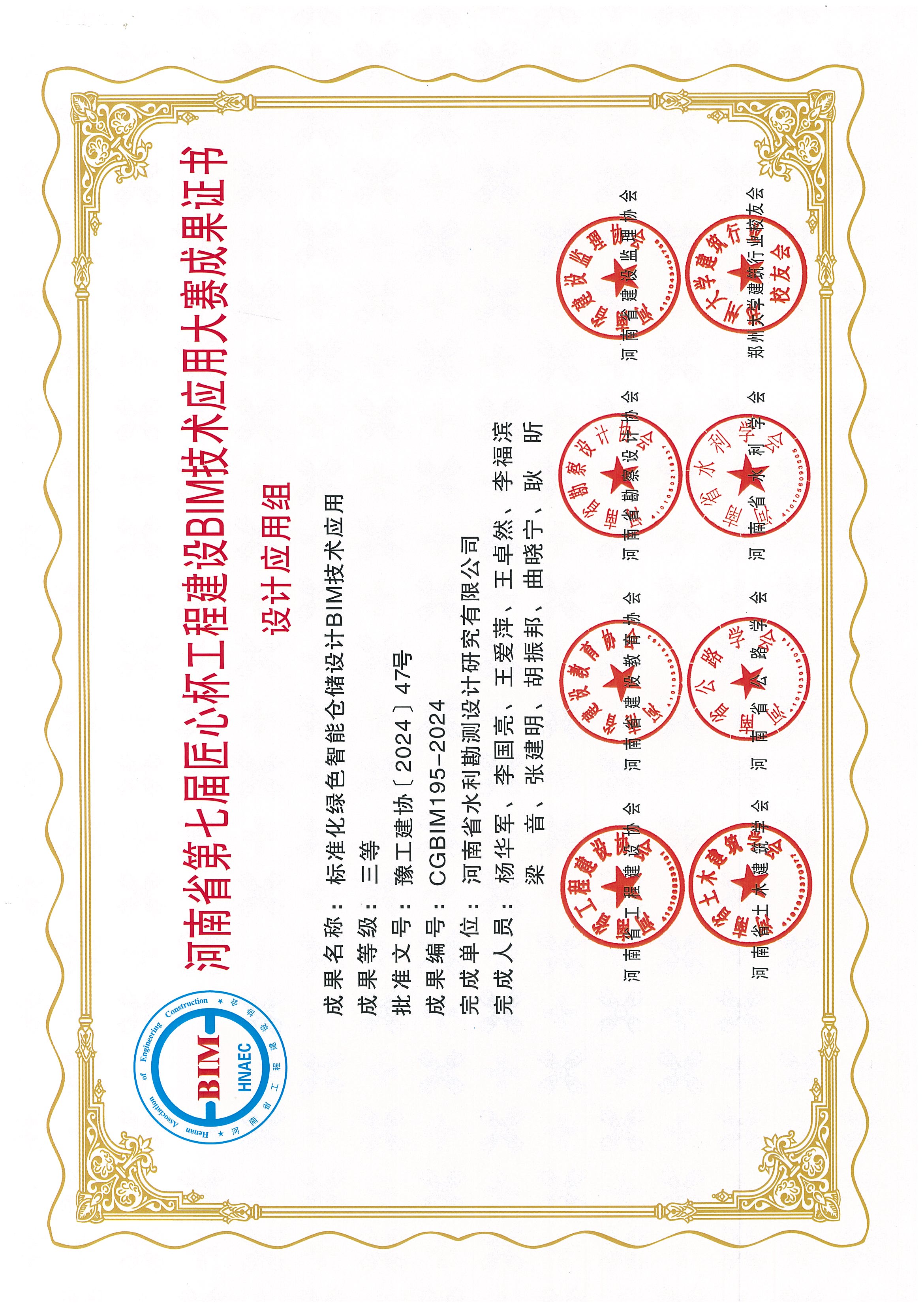 河南省第七屆“匠心杯”工程建設BIM技術大賽由河南省工程建設協會、河南省建設教育協會、河南省勘察設計協會、河南省建設監理協會、河南省土木建筑學會、河南省公路學會、河南省水利學會、鄭州大學建筑行業校友會共同主辦,公司取得了非常優異的成績,所有報送的5項成果均榮獲獎項,這不僅是對公司技術實力的肯定,也是團隊努力與創新的結晶。