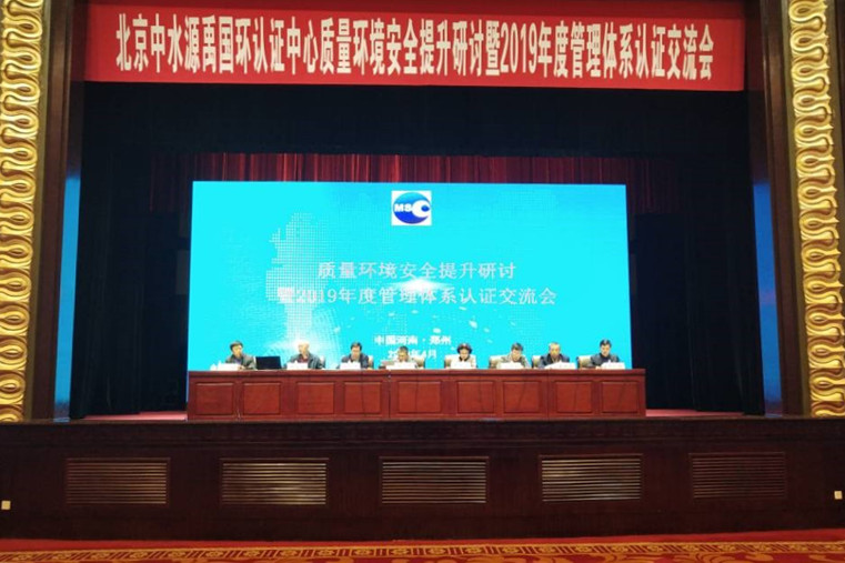 2019年4月23日至24日,北京中水源禹國環認證中心在鄭州組織召開了質量環境安全提升研討暨2019年度管理體系認證交流會。河南省水利廳副廳長戴艷萍、河南省水利勘測設計研究有限公司董事長翟淵軍親臨大會指導,水規總院副局級領導、中國水利水電勘測設計協會秘書長尹迅飛出席會議,并做了題為“加強質量環境安全管理,促進行業整體質量提升”的講話,水利部監督司安全監督處馬建新處長到會講話,水規總院科技外事處處長何定恩參加會議,就開展設計質量監督情況做了溝通性發言。有關部門領導參加會議。
