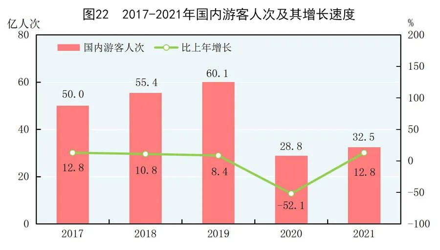 全年國內(nèi)游客32.5億人次,比上年增長12.8%。其中,城鎮(zhèn)居民游客23.4億人次,增長13.4%;農(nóng)村居民游客9.0億人次,增長11.1%。國內(nèi)旅游收入29191億元,增長31.0%。其中,城鎮(zhèn)居民游客花費23644億元,增長31.6%;農(nóng)村居民游客花費5547億元,增長28.4%。