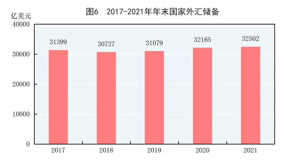 年末國家外匯儲備32502億美元,比上年末增加336億美元。全年人民幣平均匯率為1美元兌6.4515元人民幣,比上年升值6.9%。