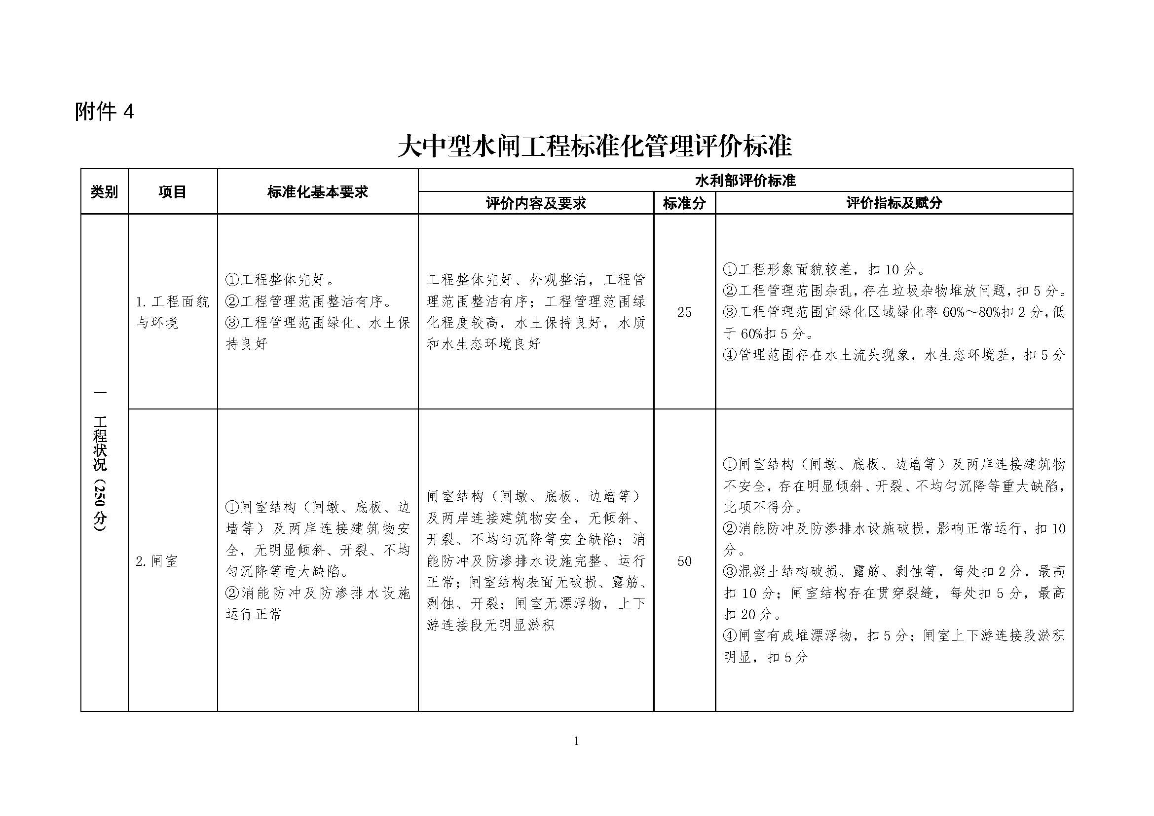 附件4 大中型水閘工程標(biāo)準(zhǔn)化管理評價(jià)標(biāo)準(zhǔn)