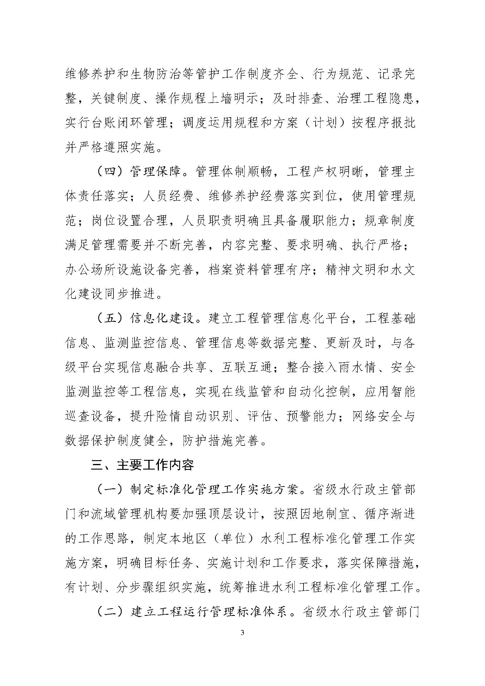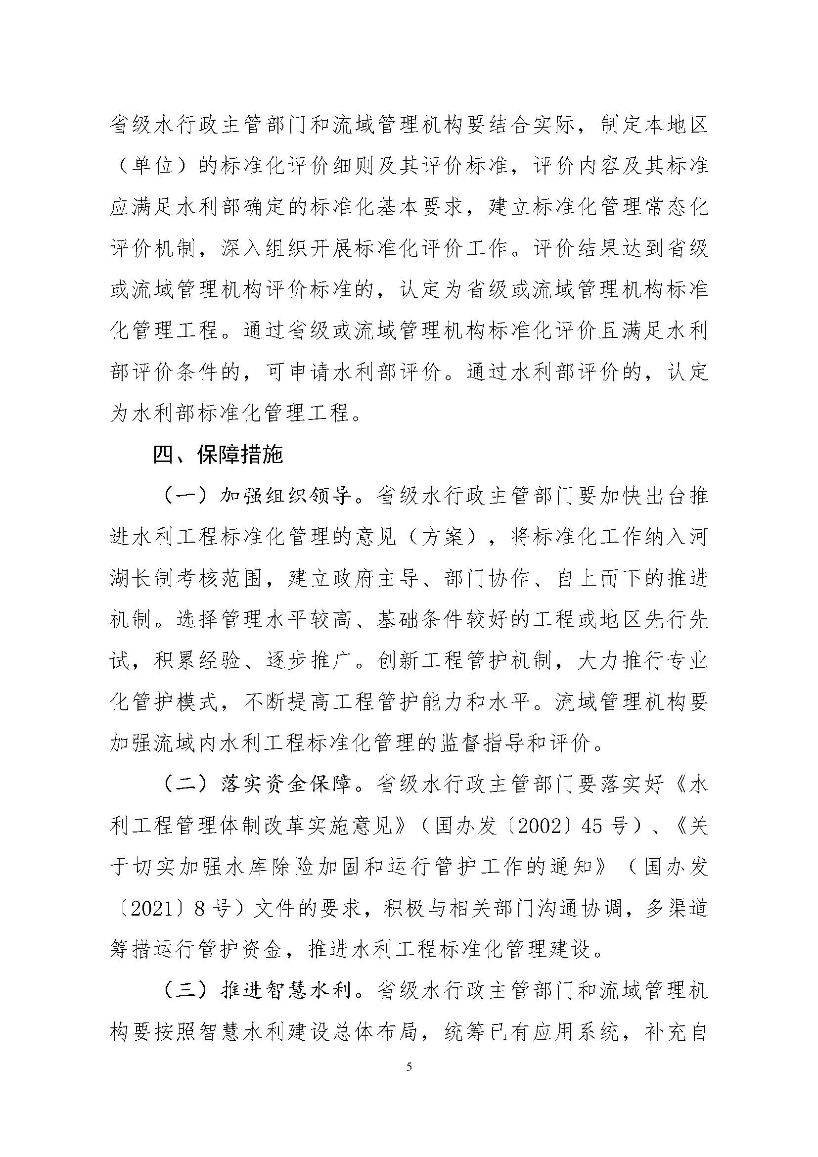 近日,水利部印發(fā)《關(guān)于推進(jìn)水利工程標(biāo)準(zhǔn)化管理的指導(dǎo)意見》(以下簡稱《指導(dǎo)意見》)、《水利工程標(biāo)準(zhǔn)化管理評價(jià)辦法》(以下簡稱《評價(jià)辦法》)及其評價(jià)標(biāo)準(zhǔn),旨在深入貫徹黨中央、國務(wù)院決策部署,落實(shí)新階段水利高質(zhì)量發(fā)展目標(biāo)任務(wù),加快推進(jìn)水利工程標(biāo)準(zhǔn)化管理工作,確保工程運(yùn)行安全和效益持續(xù)發(fā)揮。