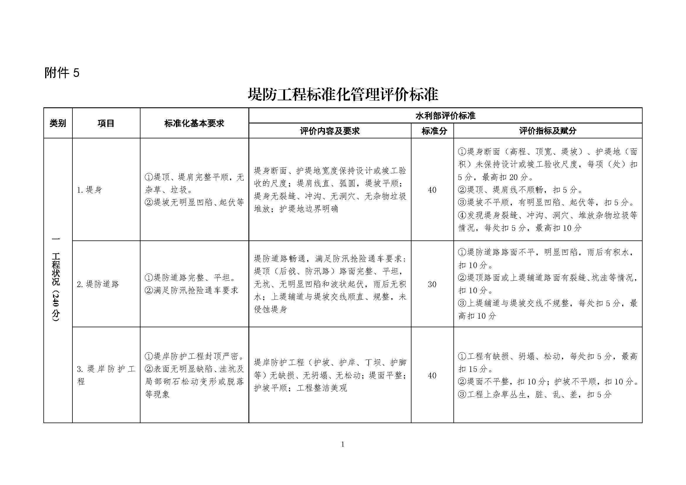 附件5 堤防工程標(biāo)準(zhǔn)化管理評價(jià)標(biāo)準(zhǔn)
