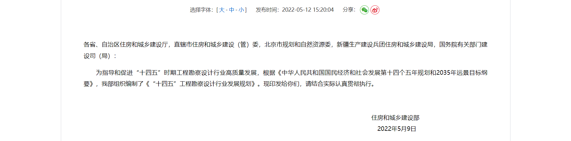 為指導(dǎo)和促進(jìn)“十四五”時(shí)期工程勘察設(shè)計(jì)行業(yè)高質(zhì)量發(fā)展,住房和城鄉(xiāng)建設(shè)部近日印發(fā)了《“十四五”工程勘察設(shè)計(jì)行業(yè)發(fā)展規(guī)劃》。