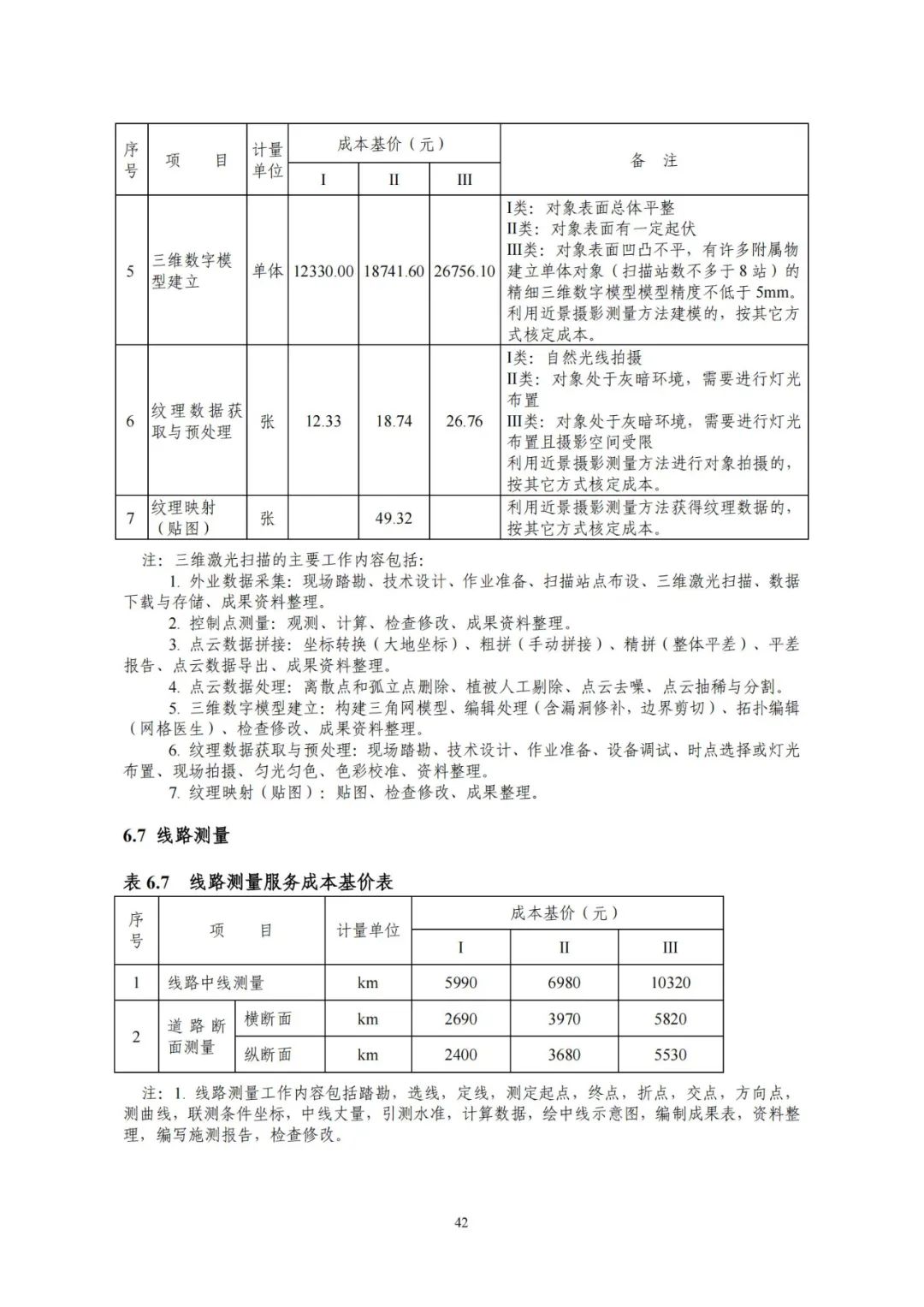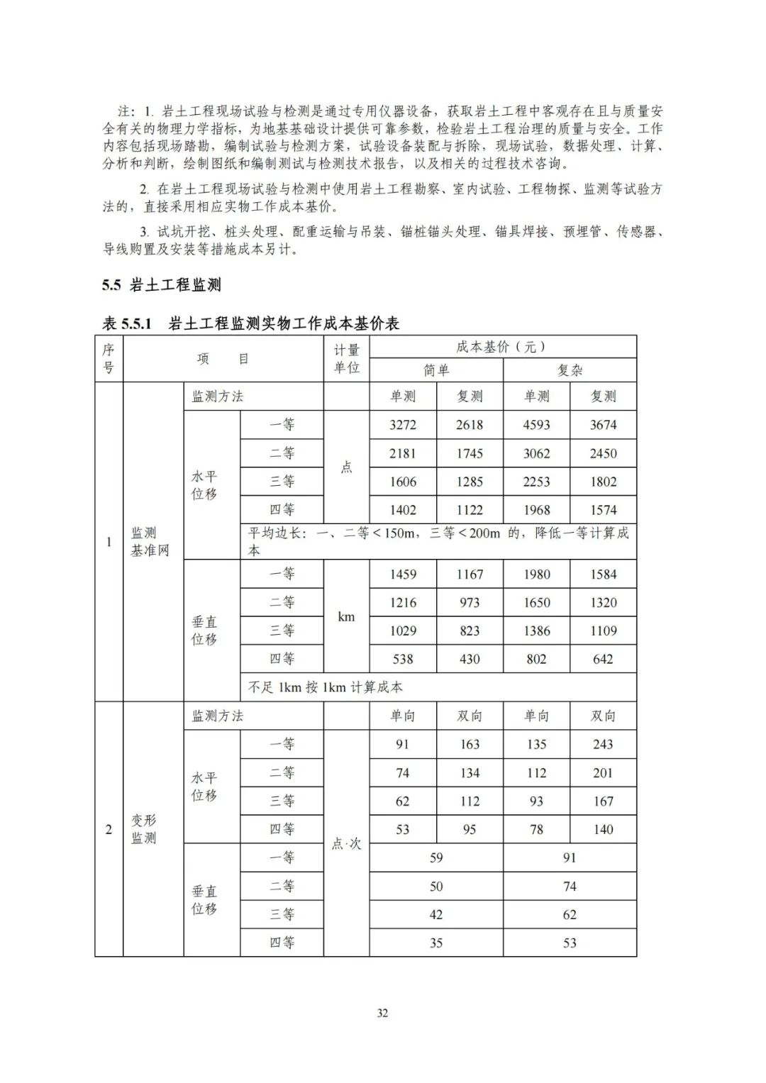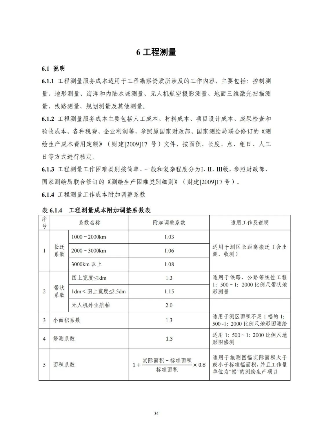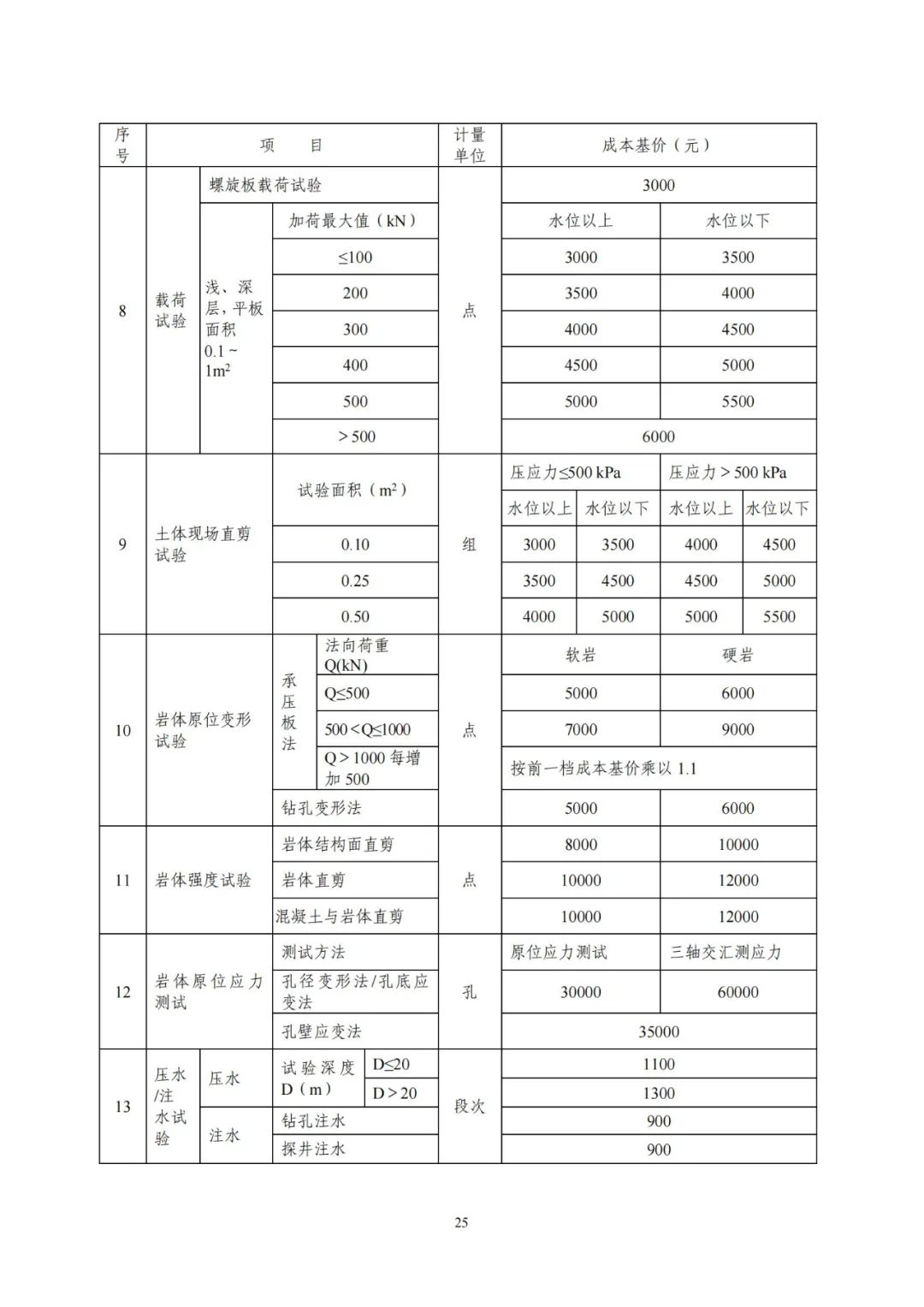 《要素信息》分為八章,相關成本測算分為工程費法(其包含巖土工程勘察、巖土工程勘察咨詢與監理、巖土工程設計和專業工程咨詢)、實物工作量法(其包含工程地質測繪與遙感地質解譯、巖土工程勘探與取樣、巖土工程試驗/檢測與監測、工程測量、水文地質勘察)及人工日法三類。除傳統的巖土工程試驗、測試和工程測量項目外,實物工作成本包括了土的易溶鹽及導熱系數等室內試驗、多功能數字式孔壓靜力觸探試驗、溫度測量等工程物探、海洋和內陸水域測量、無人機航空攝影測量、地面三維激光掃描測量、規劃測量等以新技術方法為主的專業技術服務項目。
