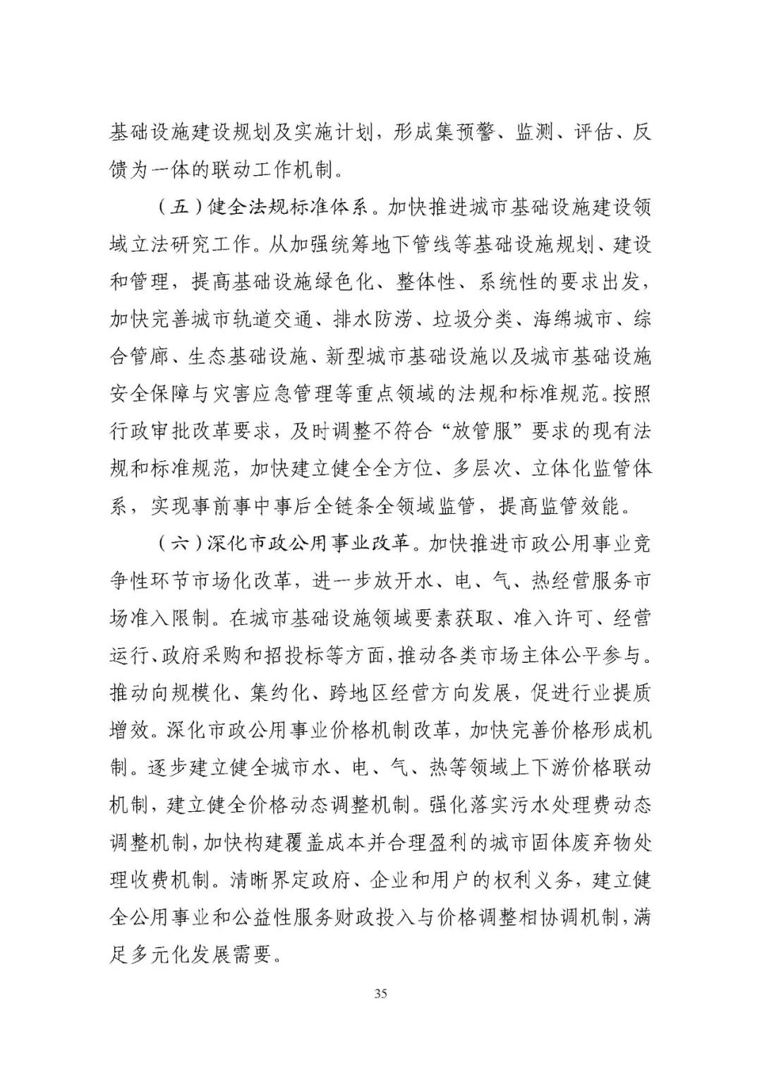 《規劃》提出,到2025年,城市建設方式和生產生活方式綠色轉型成效顯著,基礎設施體系化水平、運行效率和防風險能力顯著提升,超大特大城市“城市病”得到有效緩解,基礎設施運行更加高效,大中城市基礎設施質量明顯提升,中小城市基礎設施短板加快補齊。到2035年,全面建成系統完備、高效實用、智能綠色、安全可靠的現代化城市基礎設施體系,建設方式基本實現綠色轉型,設施整體質量、運行效率和服務管理水平達到國際先進水平。